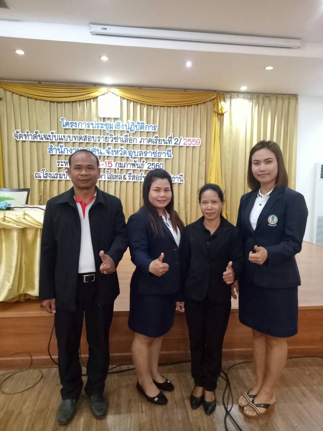 บุคลากร กศน.อำเภอน้ำขุ่น เข้าร่วมโครงการประชุมเชิงปฏิบัติการจัดทำต้นฉบับแบบทดสอบรายวิชาเลือก ภาคเรียนที่ 2/2559 ระหว่างวันที่ 14 - 15 กุมภาพันธ์ 2560 ณ โรงแรมบ้านสวนคุณตา กอร์ฟ แอนด์ รีสอร์ท อำเภอวารินชำราบ จังหวัดอุบลราชธานี